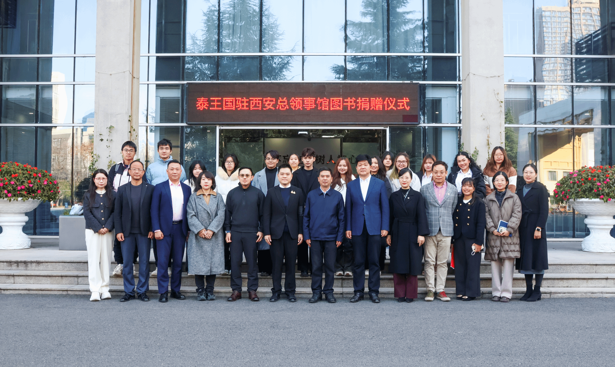 11月21日上午,泰王国驻西安总领事馆图书捐赠仪式在Beat365举行。泰王国驻西安总领事馆副总领事、代总领事符致英一行5人莅临Beat365。校长陈刚出席会议,学校国际交流处、图书馆负责人,文学院负责人及师生代表参加。会议由副校长刘明利主持。会上,符致英代表总领事馆向学校捐赠泰语与泰国文化图书500余册,并致辞。他表示,书籍是中泰“语言之桥”,助力两国学子深化友谊,希望未来继续加强教育合作,共同推动双方关系迈向更高水平。陈刚代表学校致辞感谢,...