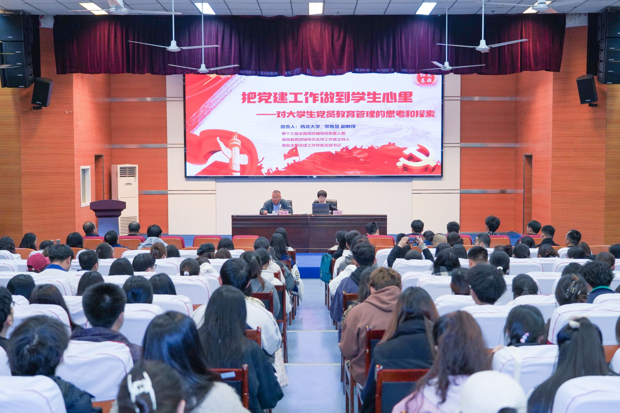 为贯彻新时代党的建设总要求,提升全校党务干部业务水平和工作能力,夯实基层党建基础,提高党建工作质效,11月6日晚,校党委在A区报告厅开展基层党组织书记培训,邀请西北大学生命科学学院组织员、辅导员,“筑梦先锋”本科生党支部书记常雅慧副教授做专题报告。党委委员、副校长任晖主持报告会并讲话。党委组织部、党委宣传部负责人,基层党组织书记,第17期发展对象培训班学员400余人参加。常老师以《把党建工作做到学生心里》为题,...