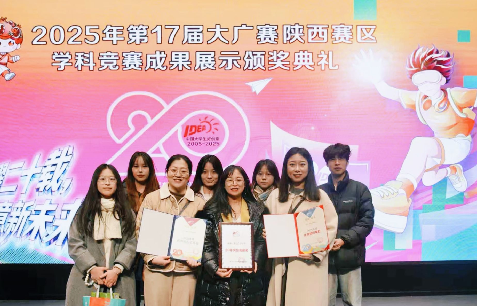 12月14日,第17届全国大学生广告艺术大赛陕西赛区颁奖典礼暨20周年回顾盛典在西北大学长安校区隆重举行。文学院教师郑玲玲、岳晨、袁晚晴及获奖学生李慧敏、冯洲洋、代晶、刘恩伊参加。在本届大赛中,文学院学子在广播类作品、视频类作品和文案类作品中一举斩获国家二等奖1项、三等奖2项以及优秀奖3项,教师张倩、袁晚晴获评“优秀指导教师”。文学院高质量组织赛事,获得“2025年度优秀组织单位”及“20年突出贡献奖”荣誉。大广赛取得好成绩,...