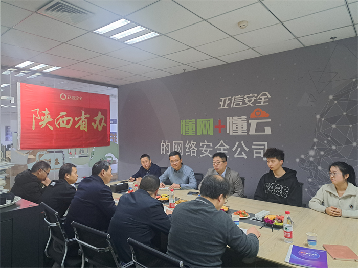 刘胜伟带领大家参观了企业西安分部的办公环境,介绍了公司情况、信息安全领域产品研发和市场运营服务,对信息工程学院在亚信科技的毕业生情况做了介绍,充分肯定了他们的工作能力和业绩。作为信息工程学院的优秀校友,刘胜伟和季茂分享了他们在学院的学习经历和在亚信安全的成长历程,对学院的人才培养给予了高度认可,并表示愿意为学弟学妹们提供实习和就业机会,帮助他们在实践中学习和成长。王向阳从学校的基本概况、办学定位、发展情况和推进校党委“七个五”工作举措方面进行介绍。他表示,信息工程学院一直致力于培养具有创新精神和实践能力的IT人才,希望通过与亚信安全等行业领军企业的合作,为学生提供更多接触前沿科技、参与实际项目的机会,提升学生的综合素质和就业竞争力。陈广锋介绍了学院的专业设置、师资队伍、教学理念、专业特色以及近年来在教学和科研方面取得的成就,表示希望通过与亚信的合作,进一步推进学院的产教融合,在夯实学生专业基础的同时,为学生提供更加贴近行业需求的教育。双方代表就如何结合学院的教学资源与企业的技术优势,共同开展科研项目、开发课程、建设实习就业基地、开展人才培养等方面进行了深入探讨,进一步达成了深化合作的共识。