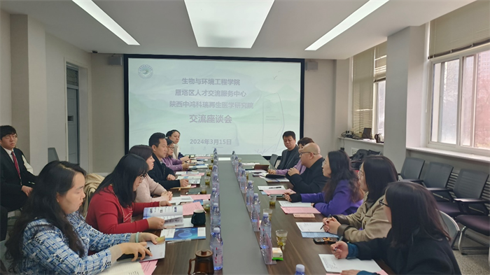 为不断深化校企合作,加强产教融合,有效推进2024届毕业生就业工作,3月15日上午,西安市雁塔区人才交流服务中心主任郭瑛、干部曹磊,陕西中鸿科瑞再生医学研究院总经理明磊国、副总经理王清霞、总经办主任郝希品等一行赴学院开展合作交流座谈活动。生物与环境工程学院党总支书记张九东及领导班子成员、师生代表等共30人参加会议。