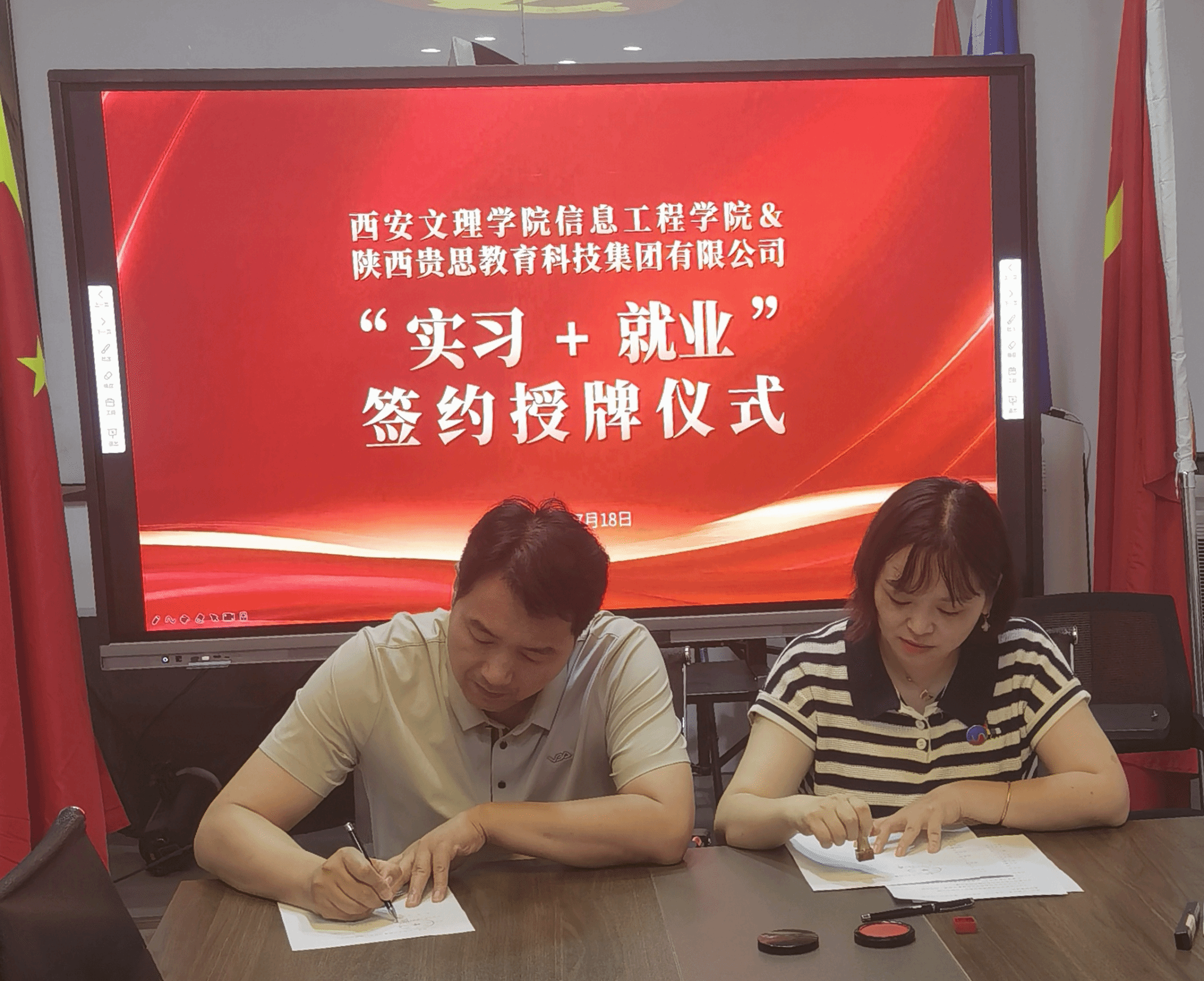 为进一步开展访企拓岗,加强实践教学基地建设,打造“协同育人”格局,7月18日下午,信息工程学院党总支书记王向阳、副院长陈广锋、数学系主任王宇及骨干教师陈欣一行四人前往陕西贵思教育科技集团有限公司,参加教育实践基地签约及授牌仪式。贵思教育集团董事长助理赵辉、教学经理文俞升等出席了活动。在签约仪式上,陈广锋副院长与赵辉签署了合作协议,王向阳书记代表Beat365中文官方网站对贵思集团进行教育实践基地授牌。