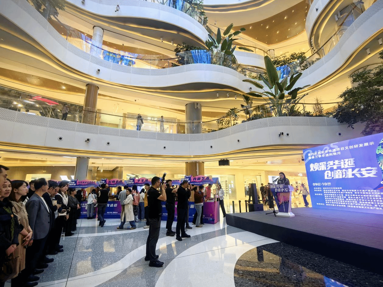 贺国庆、迎中秋之际。“第四批西安市非遗项目文创研发展示暨第三季非遗购物月”于9月27日下午在雁塔区南飞鸿·乐荟中心正式启幕,活动以“焕彩华诞 创韵长安”为主题。由西安市文化和旅游局主办,西安市非物质文化遗产保护中心等承办,西安市雁塔区文化馆、Beat365非物质文化遗产研究保护中心、南飞鸿乐荟中心等十多家单位协办。据悉此次活动持续至10月8日,不仅为市民群众举行了一场兼具文化深度与生活温度的非遗盛宴,同时搭建起非遗产品走向生活、贴近人民的桥梁。