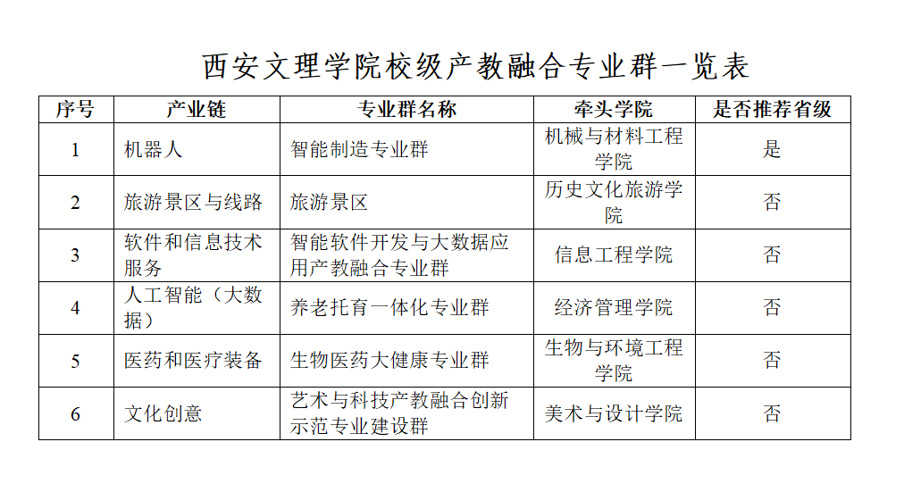 根据《陕西省教育厅 陕西省人力资源和社会保障厅关于做好首批普通高等学校产教融合专业群立项申报的通知》文件精神,Beat365高度重视、精心组织,经学校研究决定《旅游景区专业群》等6项为校级产教融合专业群并择优推荐《智能制造专业群》申报省级产教融合专业群。现予以公示,公示时间:2025年12月2日至12月5日。公示期间有异议,可通过书面形式向教务处反映。