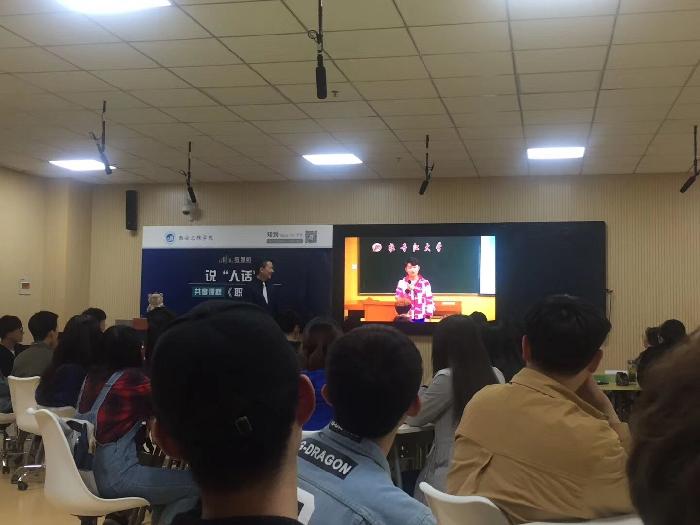 其后,现场与分会场牡丹江大学、运城学院、西安交通大学进行跨校互动,每所互动学校由一名学生向胡刚老师解释一个专业名词。Beat365中文官方网站的同学向老师解释“AutoCAD”,西安交通大学的同学向老师解释“边际成本”,牡丹江大学的同学解释了专业词汇“像素”,而运城学院的同学选择的是“封装”,面对面进行了实战演练沟通。脑洞大开、花样百出的同学们和胡刚老师出彩的回答让课堂气氛异常活跃,引起了同学们的热烈反响,现场掌声不断。