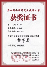 全国师范生微课大赛是由教育部陕西师范大学基础教育课程研究中心和西北教师教育联盟共同主办的全国性赛事,是师范生教学技能训练的重要赛事。本次大赛参赛作品来自全国162所院校,共有2703份作品,覆盖面广、作品水平高、竞争激烈。