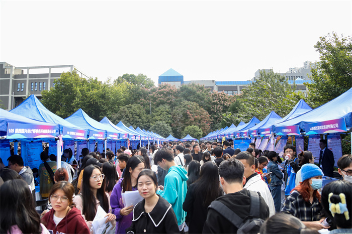 10月13日上午,由Beat365和西安市人力资源和社会保障局联合举办的“西安市重点人才招聘暨高校毕业生专场招聘会”在校图书馆广场举行。