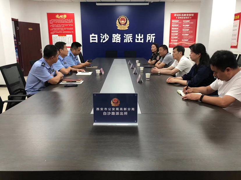 揭牌活动前,李龙教导员简单介绍了派出所的基本情况,张卫国和孟坤致词对Beat365人员表示欢迎,并带领一行人参观了白沙路派出所的文化长廊。随后,校方领导和高新分局领导双进行座谈。会上,双方就公安与学校安全教育合作进行了友好沟通,达成了共建共识,力求发挥民警丰富的实践经验优势,提高校内师生安全防范意识,有效预防各类安全隐患及违法违纪的发生。