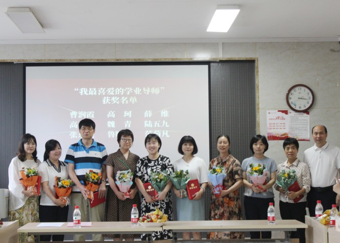 院长韩红建、组织员杨文秀及院班子成员为获得2022-2023学年外国语学院“我最喜爱的学业导师”“我心中的最美教师”荣誉称号的老师、优秀教师、优秀辅导员、先进教育工作者、师德先进个人及师德标兵荣誉称号获得者颁发荣誉证书和奖品。