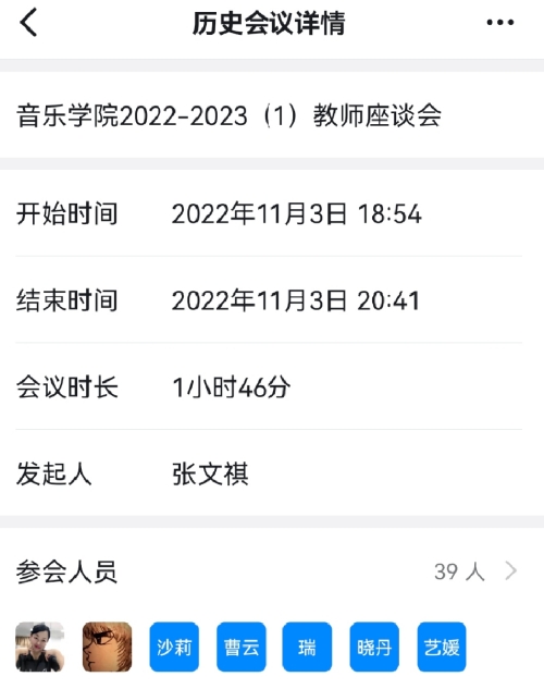 11月3日晚,音乐学院召开本学期期中教师座谈线上会议,学院领导班子、各系部主任和全体教师参加了此次会议,会议由音乐学系主任郭瑞玺主持。