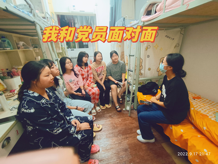 9月17日,外国语学院副院长姚金红,党总支副书记王一,学生党支部书记田先利到学院德育工作站指导学生党员进宿舍开展“我和党员面对面,开启大学新篇章”活动。