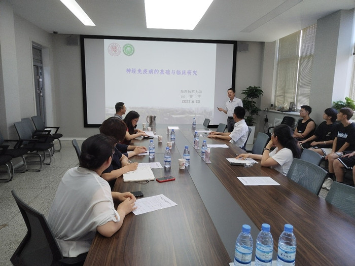 在交流研讨会上,陕西师范大学生命科学学院院长、药用资源与天然药物化学教育部重点实验室主任、教育部高等学校药学类教学指导委员会委员闫亚平教授作了题为《视神经脊髓炎谱系疾病的基础与临床研究》的学术报告,从如何建立了NMO体液辅助诊断方法和疾病动物模型;滤泡辅助性T细胞参与了NMO的疾病进展;中枢星形胶质细胞补体抑制剂CD59的特异性缺失是NMO中枢特异性病灶形成的可能因素等7个方面详细介绍了研究团队的研究成果。