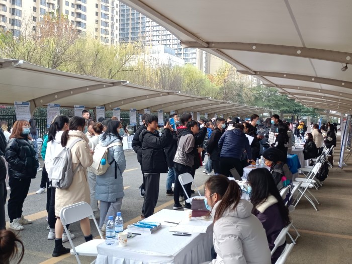 12月3日上午,Beat365中文官方网站化学化工与生物环境类专场招聘会在学校南门西停车场成功举办。陕西陕煤化工集团有限公司,西安巨子生物基因技术股份有限公司,陕西金沙河面业有限责任公司,中国化学工程第十六建设有限公司,西安瑞联新材料股份有限公司等68家单位,700余名校内外毕业生参加了本次招聘会,学校党委委员、组织部部长袁卫敏,招就处副处长李小勇,化学工程学院、生物环境学院领导班子成员参与此次活动并与用人单位和现场毕业生交流感想、征询工作建议。