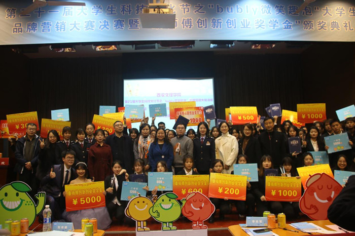 本次大赛共设特等奖1个,一等奖2个,二等奖3个,三等奖4个和优胜奖5个。在比赛环节中,15支队伍围绕“bubly微笑趣泡”品牌营销,通过视频广告、快闪广告、宣传海报、营销策划书及路演、评委提问答辩五个环节展开激烈角逐,各队创意精彩纷呈。最后,特等奖、一、二、三等奖、优胜奖分别花落经济管理学院、美术与设计学院、文学院、信息工程学院、化学工程学院这五支代表队。