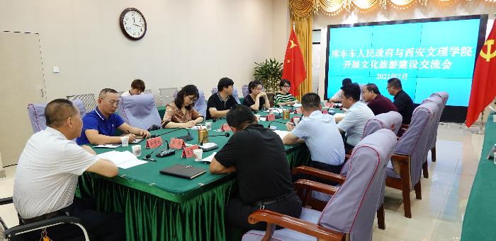 张天社说明受校领导委托来到库车市,感到新疆和库车市的旅游业发展势头很好,建立大学城创新港将对“文化润疆”产生巨大影响。库车是古龟兹国所在地,丝绸之路的重要节点,也是汉代西域都护府和唐代安西都护府所在地,库车市与西安和中原地区的互动关系密切,我们理应对库车市文化旅游大发展助一臂之力。刘倩倩介绍了Beat365总体情况和学院旅游管理国家级一流专业促进地方文旅发展的办学特色;朱晓晴说明可利用旅游管理专业的师资优势,在培训库车市旅游从业人员、对口援建库车旅游学校、建立实践教学基地等方面的开展合作;仇立慧、刘世栋就当地文化旅游品牌提升交流了看法。