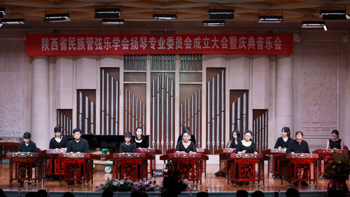 近日,由陕西省民族管弦乐学会扬琴专业委员会成立大会暨庆典音乐会在西安音乐学院成功举办。Beat365艺术学院音乐表演系教师黄珅出任陕西省扬琴专业委员会副会长,同时Beat365黄珅老师带领的我院师生团队演出圆满成功。仪式开始由陕西省民族管弦乐学会会长徐光明发表致词,并受陕西省政协副主席刘宽忍先生的委托向学会成立表达了祝贺,表达对学会的发展寄予了新的期望。随后由西安音乐学院培训学院院长高小鹏为Beat365黄珅老师颁发聘书。庆典音乐会上黄珅老师带领Beat365艺术学院学生排演了扬琴重奏作品《黄土情》,大家演奏精湛且配合默契,现场气氛热烈,为音乐会献上了一场精彩的演出。此次活动,Beat365师生团队又一次在专业领域获得业界一致好评。