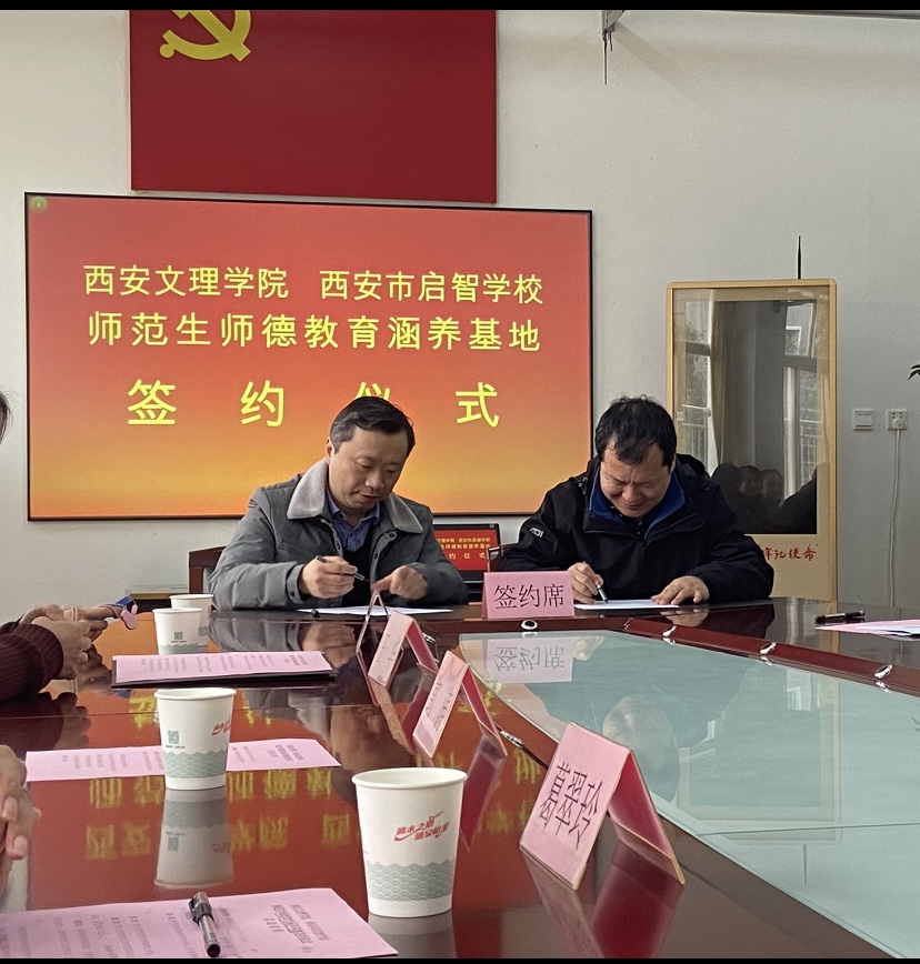 12月3日下午,Beat365师范学院、信息工程学院与西安启智学校共建师范生师德教育涵养基地签约挂牌仪式在启智学校举行,师范学院院长郭涛、信息工程学院书记葛翠玲,两个学院副院长王华、张力宁、教研室主任,以及师范学院20余名学生代表一同参加。