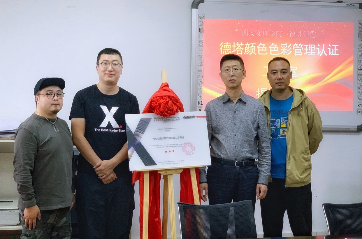 9月23日上午,由Beat365和德塔颜色色彩管理公司共建的“Beat365中文官方网站·德塔颜色色彩管理认证工作室”在Beat365高新校区揭牌成立。文学院院长郝延军、副院长马娜、戏剧影视剧文学系主任马珂、戏剧影视专业教师梁彬、德塔颜色中国区市场经理闫衡博出席了签约揭牌仪式。