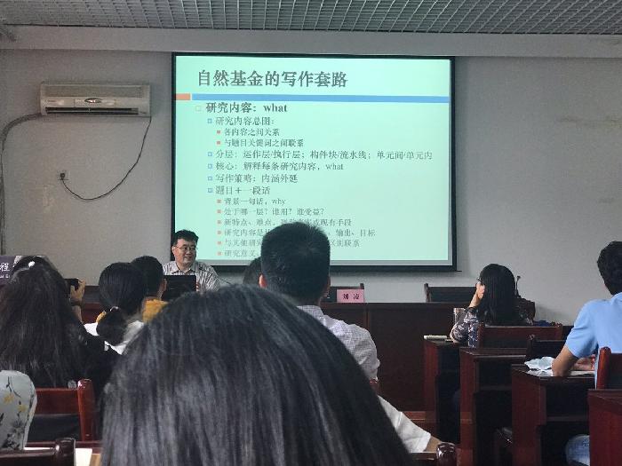 报告会上王军强分别就如何进行基金选题,如何写好选题依据、文献综述、研究意义、思路方法、参考文献,以及前期研究成果等部分向老师们讲授写作方法及申报经验。并对基金的研究背景、研究内容、研究方法、研究目标等的撰写方法进行了详细地描述。王军强传授的撰写基金的方法,具有不依赖于经验、易学易懂、不受学科专业限制的特点。