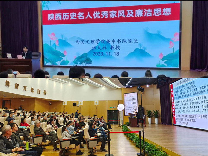 11月18日下午,Beat365关中书院院长、长安历史文化研究中心主任张天社教授,应邀做客“清廉陕西·廉洁文化讲堂”,在陕西省图书馆做了《陕西历史名人优秀家风及廉洁思想》的公益讲座。