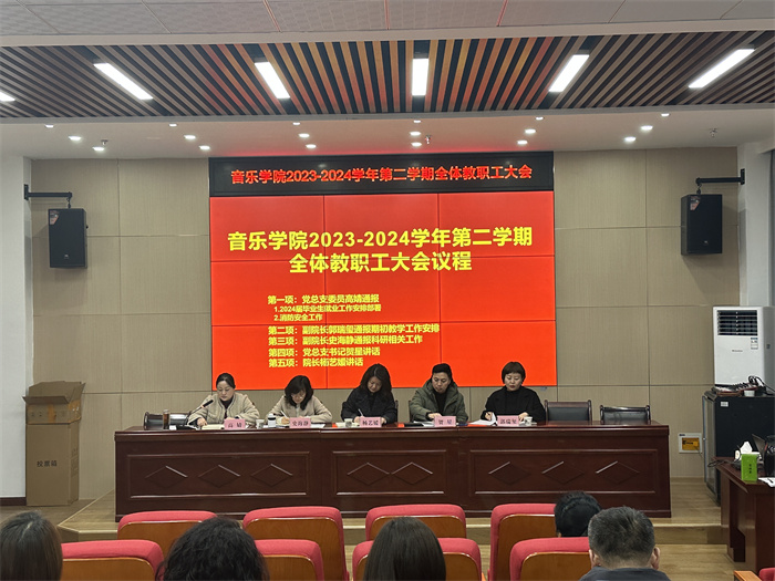 2月28号下午,音乐学院在学术报告厅召开2023-2024学年第二学期全体教职工大会,学院全体教职工参加会议,会议由学院党总支书记贺星主持。