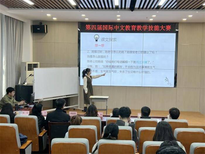 本次比赛包括教案设计、课件制作、教学展示、现场问答等几个环节,参赛者在讲台上无论是对国际中文教育教学技能的把握、对教学语言的表达运用,还是现代信息教育技术的运用能力都表现出了较高的水平。
