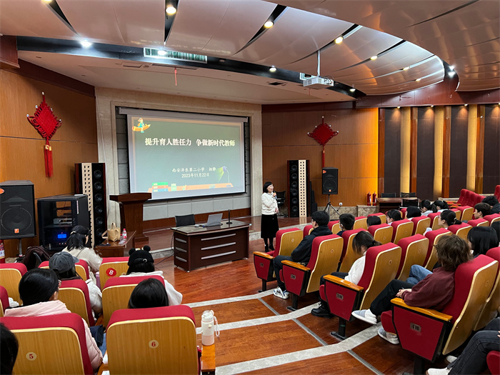 11月22日,文学院举办汉语言文学专业学业发展专题讲座,邀请西安沣东第二小学高级教师相静做了“提高育人胜能力,争做时代新教师”专题报告,汉语言文学专业副主任李冰清,2023级全体学生参加讲座活动。本次讲座由汉文专业李莉教授主持。