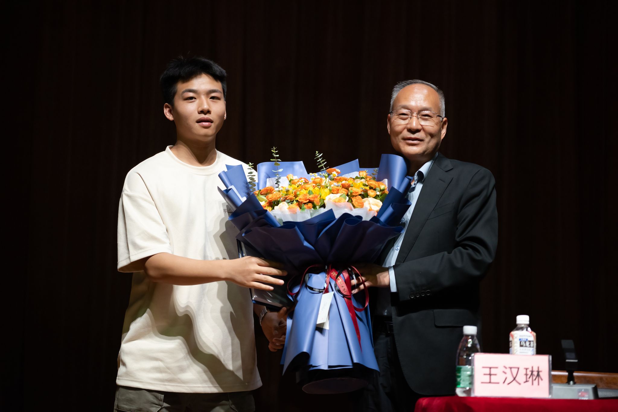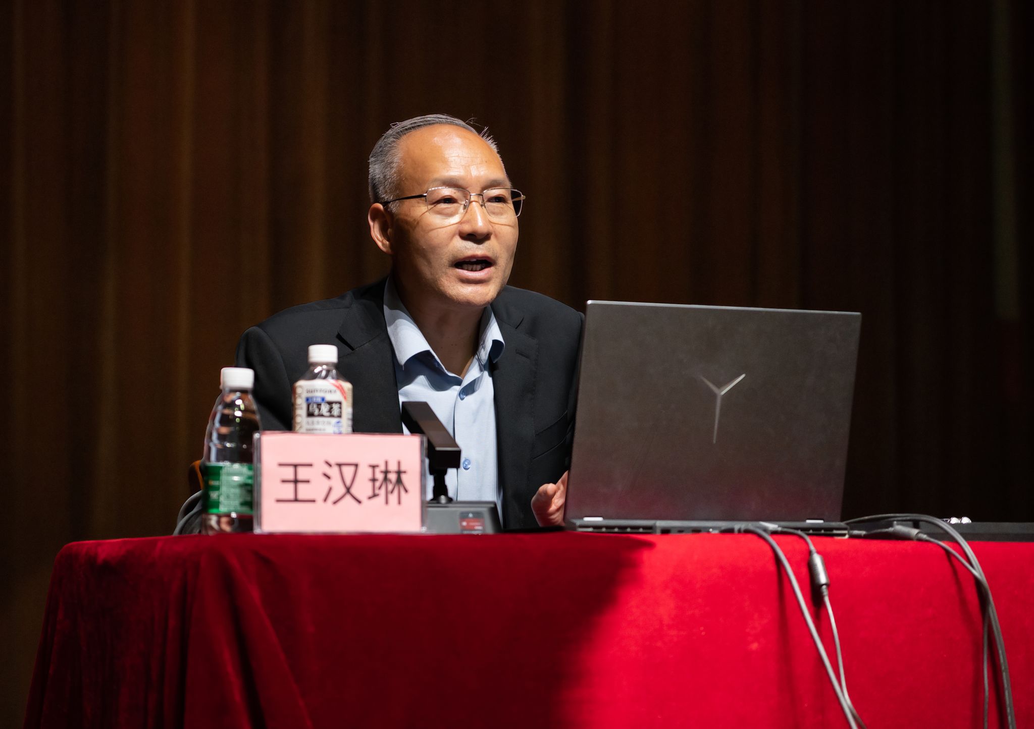 讲座开始前,田军为王汉琳颁发了“特聘教授”荣誉聘书。 接下来王汉琳从三个方面展开讲座内容。首先以秦兵马俑、秦始皇陵、华山、华清池、乾陵、法门寺、汉阳陵等最具代表性和吸引力的文化景点为案例分享了陕旅集团发展历程,聚焦厚植陕西文化传承发展之根,以文化文旅融合滋养高校美育育人。其次从文创产品研发的角度为师生分享了实践经验及成长思考。他表示,近些年陕旅集团充分挖掘陕西优秀而丰富的历史文化基因,结合现代科技和工艺,不断推陈出新,打造了一系列成功的文创品牌,集团积极研发设计文创产品,大力发展文创产业,实现文化传承与产业创新的融合。其中包含了陕旅集团旗下的华清宫文创产品中心、“延知有礼”文创中心、白鹿原文创等具有代表性的文创IP。最后他从美育文旅融合、文化自信的角度鼓励在场的文理学子要始终心怀热情和理想,培养持续的创新意识,以创造之力服务社会。