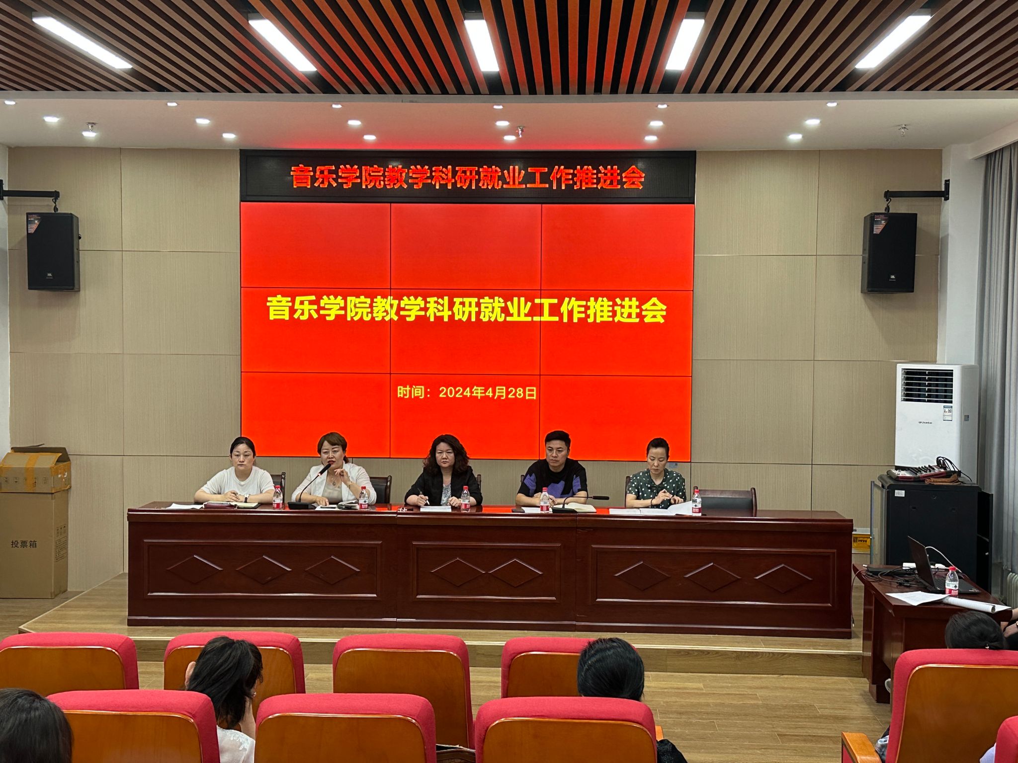 4月28日中午,音乐学院在学术报告厅召开2023-2024学年第二学期教学科研就业工作推进会,学院全体教职工参加会议,会议由学院党总支书记贺星主持。