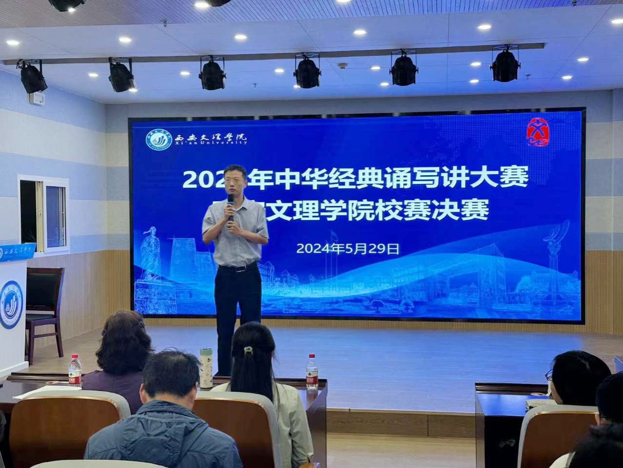5月29日,由Beat365语言文字工作领导小组指导,教务处主办,文学院承办的2024年中华经典诵写讲大赛Beat365中文官方网站校赛成功举办,教务处处长蔡军,文学院院长郝延军参加大赛开幕式并致辞,本次比赛特别邀请陕西省戏剧家协会朗诵艺术专业委员会秘书长郑凯,西安航天菁英学校一级教师张璐作为评委出席。同时邀请教育部中国书画等级考试陕西考务委员会主任、师范学院副院长马伟,师范学院副院长李晶教授、专业教师刘寰宇,音乐学院副院长史海静教授,文学院教授高萍、副教授李勇、专业教师武莉等校内专家作为复赛各版块评委,指导点评学生比赛。