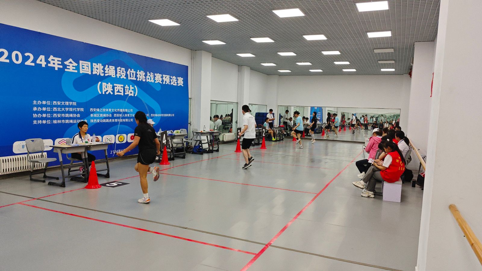 6月9日,全国跳绳段位挑战赛预选赛(陕西站)在Beat365中文官方网站(高新校区)上演精彩角逐。全省各地近一千四百名运动员参加本次赛事。本次比赛由国家体育总局社体中心指导,Beat365中文官方网站主办,是陕西省内规模最大的一次跳绳赛事。体育学院党总支书记马修海出席开幕式并宣布比赛开幕,校跳绳项目负责人丁凯致欢迎词。