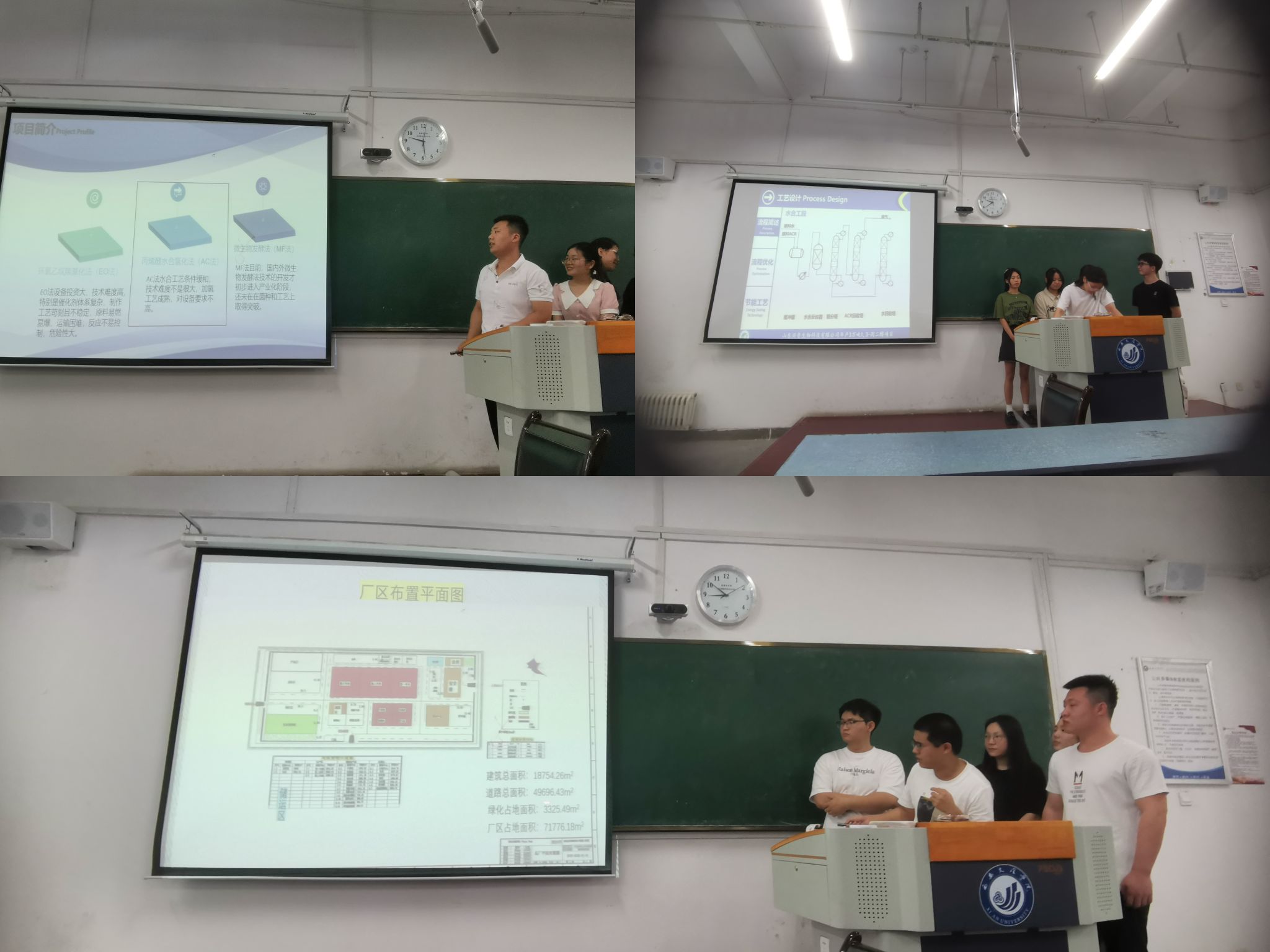 本次比赛围绕“为某大型化工企业设计一座 1,3-丙二醇清洁生产的分厂”展开。参赛的13支队伍采用PowerPoint讲演文档和口头报告的形式介绍参赛作品,评委老师根据各队完成的文档、图纸及其质量进行评议和打分,最终评出晋级省赛的参赛团队3个。