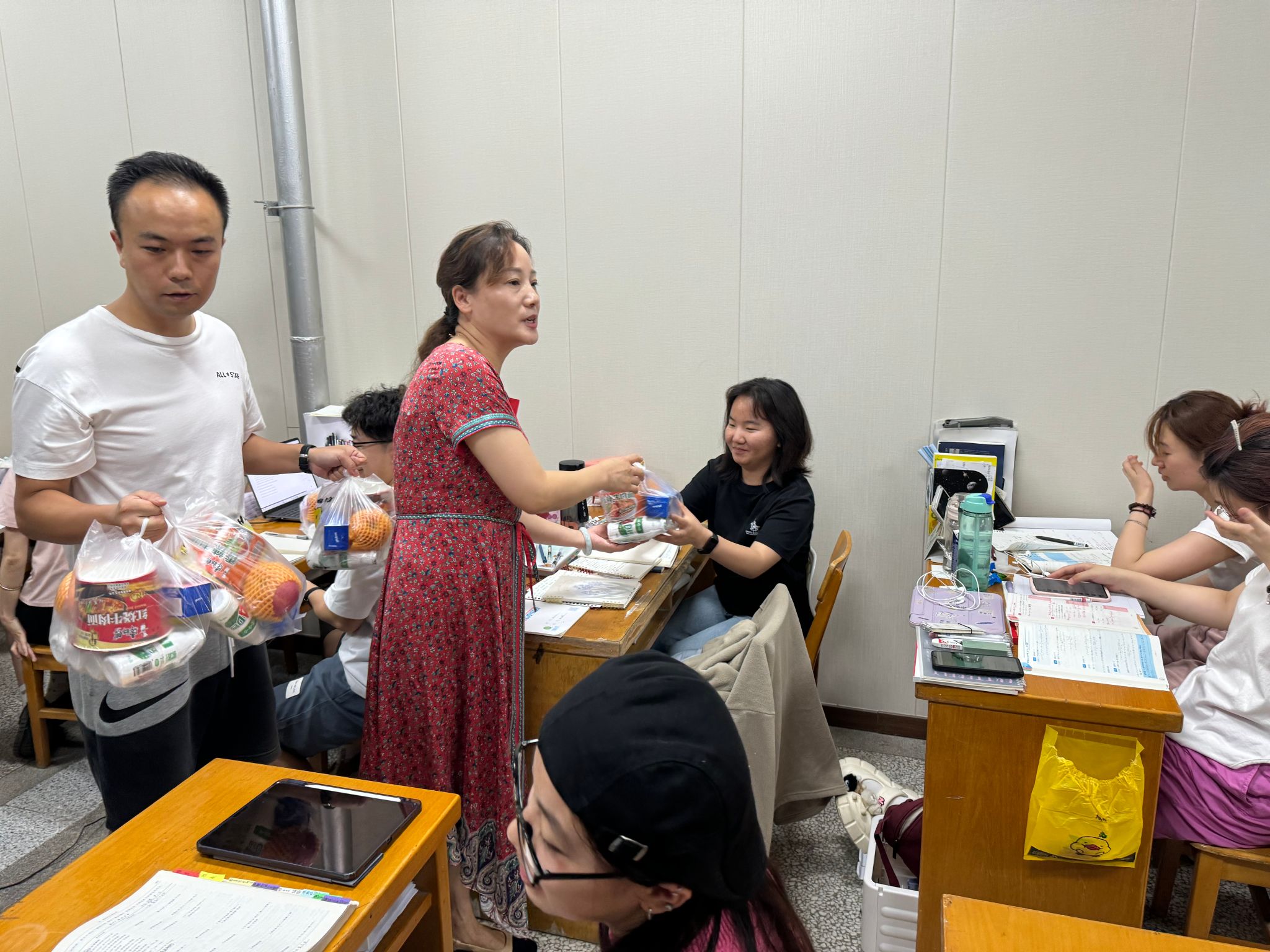 7月23日下午,化学工程学院院长翟云会、党总支书记曹贤姿、副书记程全伟等慰问暑期留校加班教师、留校参加学科竞赛学生和考研班学生。