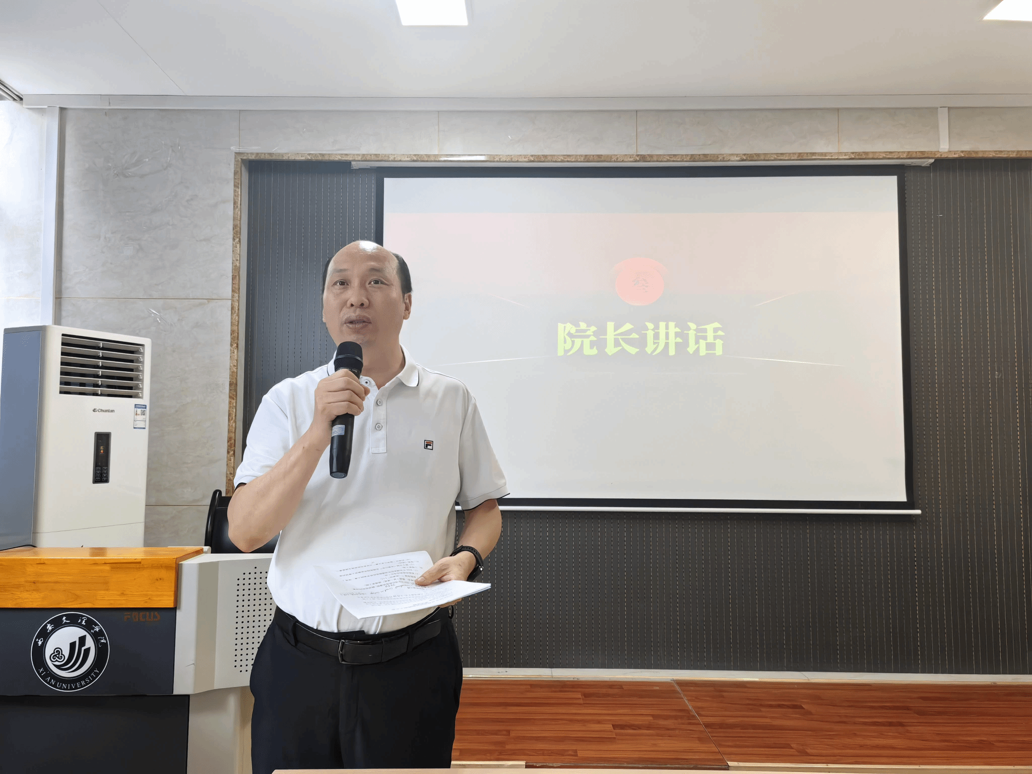 院长韩红建在总结讲话中首先回顾了过去一年里学院在教学、科研方面取得的成绩,肯定了全院教职工在师范认证和审核评估中所做的贡献和辛苦付出。其次,结合专业结构布局调整,深入分析了学院面临的机遇和挑战。最后结合学院的发展和年初设定的目标任务,对本学期的重点工作做了全面动员和安排部署。