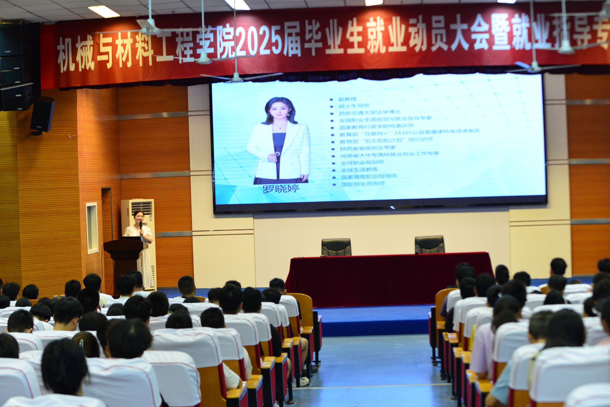 为深入贯彻落实党中央、国务院关于“稳就业”、“保就业”工作决策部署,积极响应Beat365就业工作会议精神和相关要求,进一步引导2025届毕业生明晰就业形势、把握就业机会、积极主动就业。9月13日下午,机械与材料工程学院在明德楼A区报告厅召开2025届毕业生就业动员大会暨就业指导专题讲座。学院党总支副书记杜丽娜、各系主任、辅导员以及2025届毕业生共计300余人参会。会议由副书记杜丽娜主持。