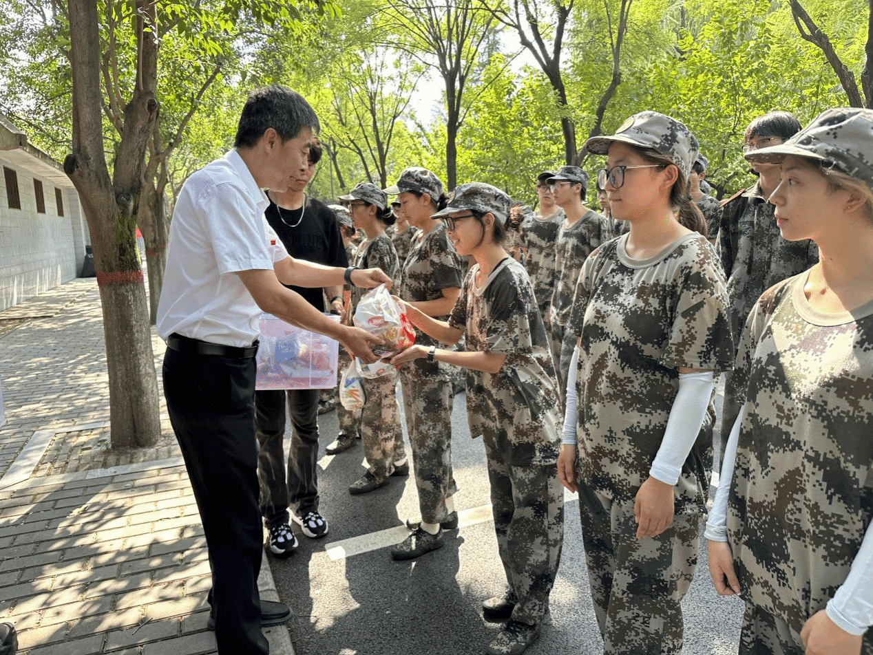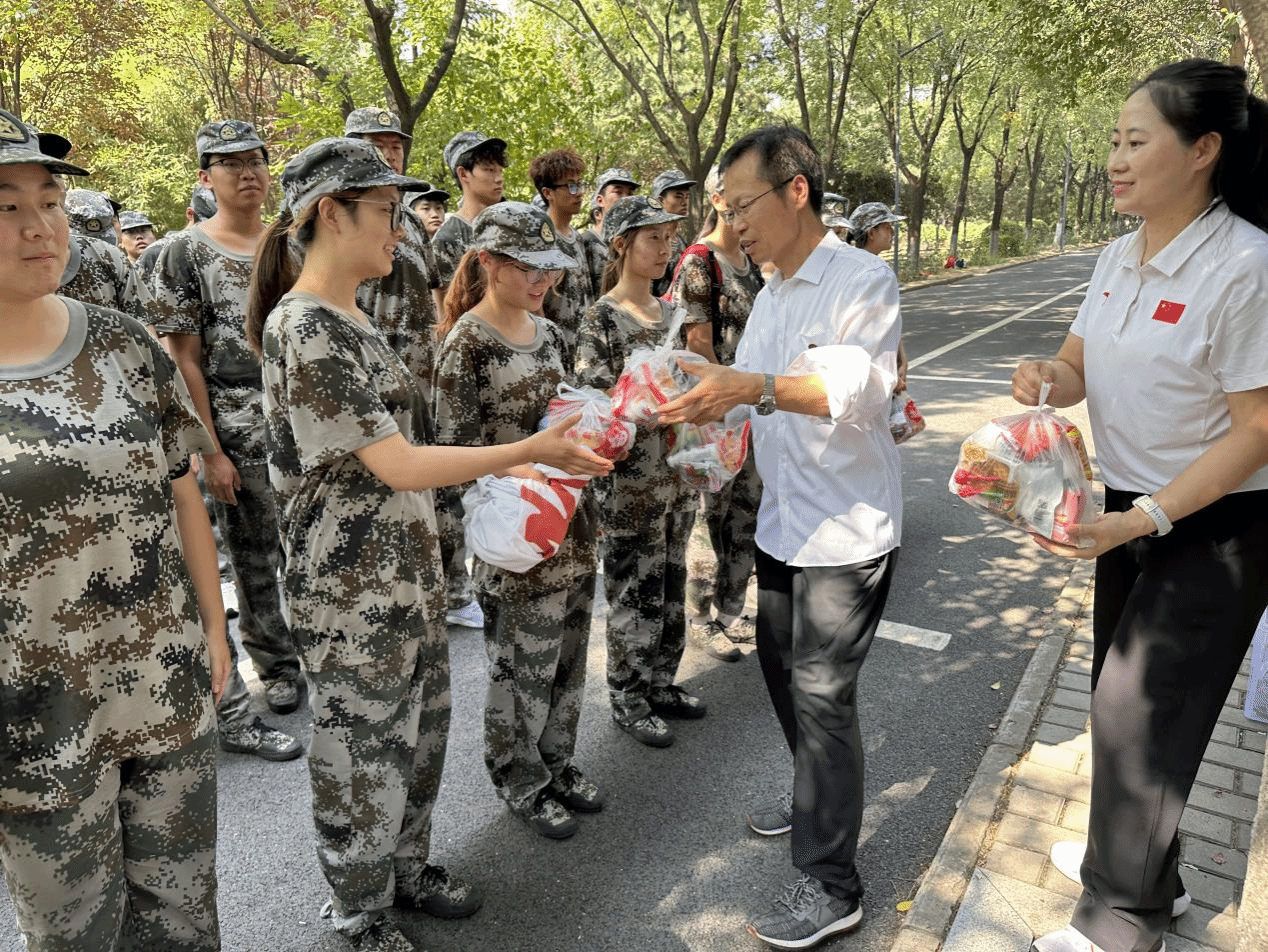 上午时分,学院领导一行带着满载的节日礼物——精美的月饼、营养的牛奶、新鲜的水果等走进军训现场,瞬间为紧张而有序的军训氛围增添了几分温馨与喜悦。