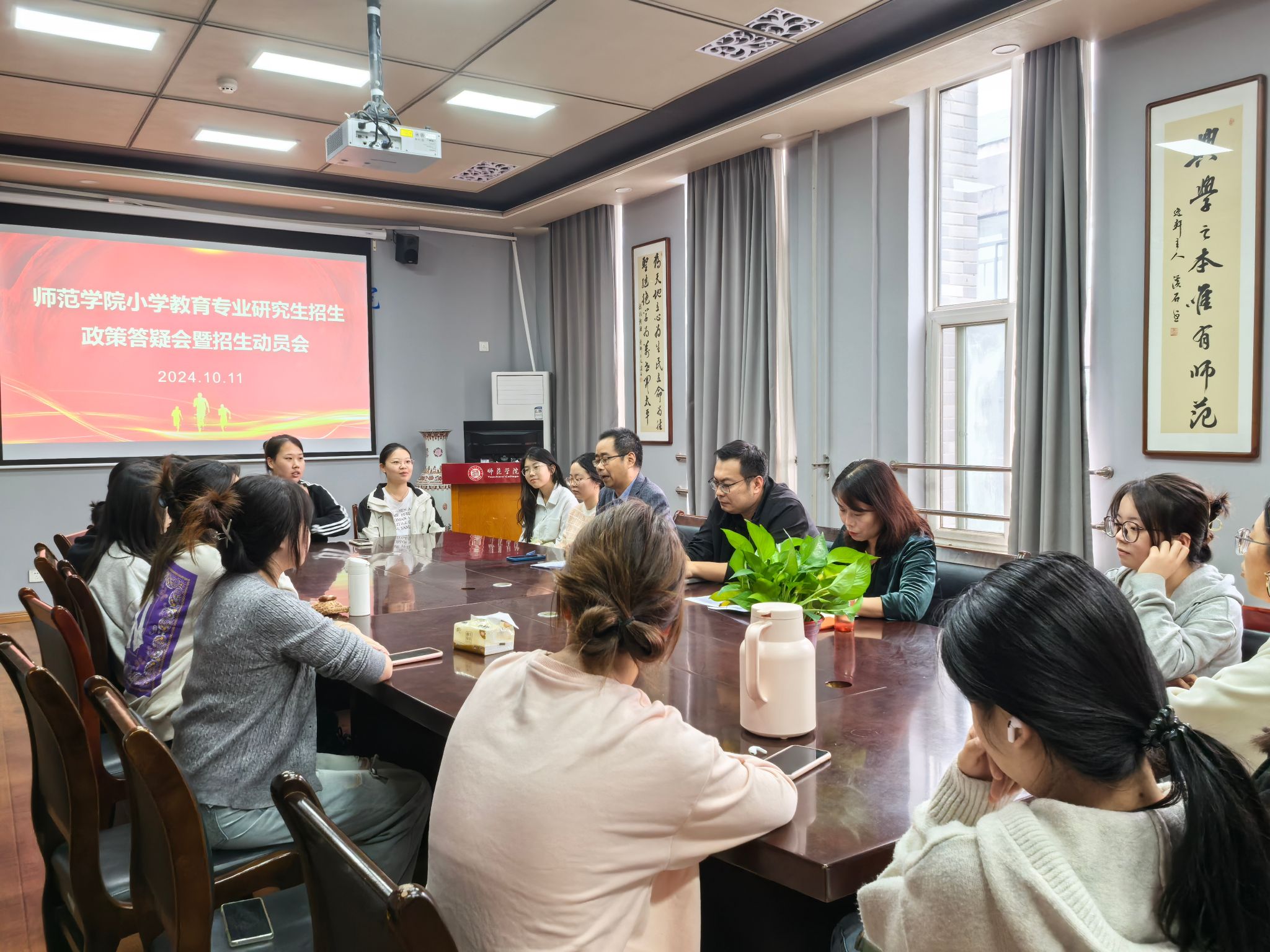 在轻松的交流中,李承副书记强调了考研对于个人成长和学院发展的重要性,鼓励同学们保持乐观向上的心态,勇于面对挑战。考研不仅是对知识掌握的考验,更是对意志力与决心的磨炼。李晶副院长则从实际操作层面出发,分享了一系列高效备考策略,提醒大家注意身体健康,合理安排复习计划。小学教育系主任闫成海则以自身经历为例,生动讲述了考研路上坚持与努力的意义,激发了在场每位同学的斗志,面对堆积如山的资料和似乎永无止境的习题,希望同学们能够保持内心的平和与坚定,用实际行动诠释“不忘初心,方得始终”。同时将本学院的小学教育研究生招生为大家做了全面的介绍。
