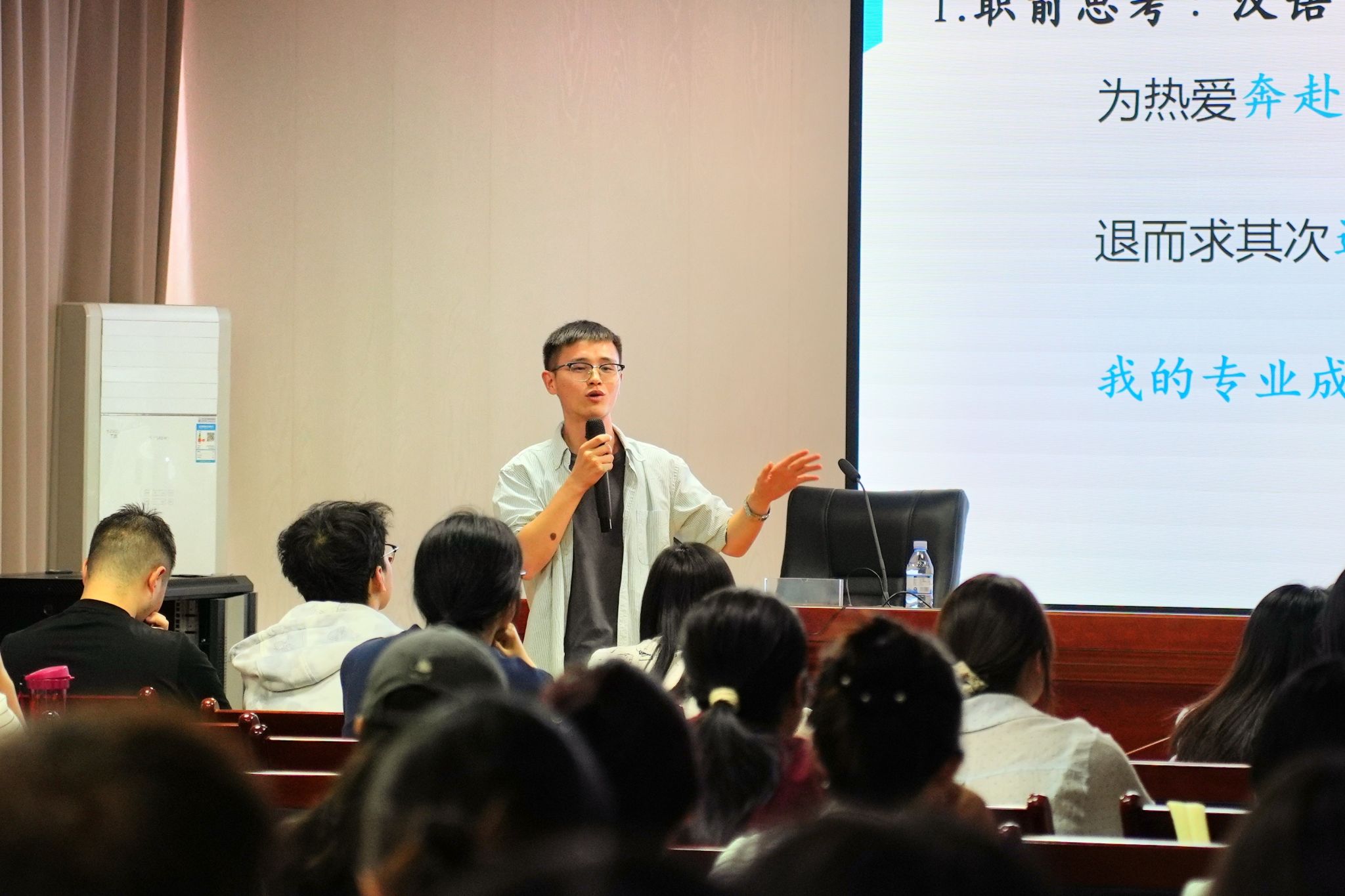 为发挥优秀校友的榜样引领作用,促进汉语言文学专业师范生的职前专业成长,更好地规划未来的职业发展路径,文学院于10月16日下午举办了“师范生专业成长·我听学姐学长说”系列讲座。本次讲座邀请了Beat365文学院2018级校友、西安交通大学附属中学空港校区语文教师兼语文学科中心主任张国力,为汉语言文学专业的师范生作了题为“语文教师的职前专业成长与职后专业追求”的专题讲座。讲座由文学院汉语言文学专业李莉教授主持,专业教师武莉、那朝霞以及2022级汉语言文学专业全体学生参加了此次活动。