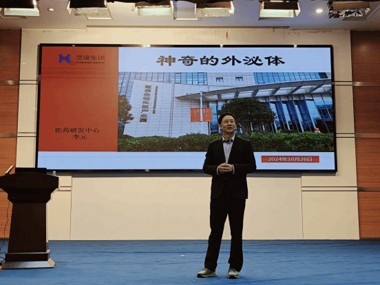 随后,各位专家带来了精彩报告。王子见与大家分享了《基于核质转运通路的神经退行性疾病候选药物研发》的经历,探讨了实验过程中遇到的各种挑战,并指出培养创新思维和技术水平、加强团队合作是推动学习和发展的关键环节。李元教授以轻松幽默的方式介绍了其研究成果——《神奇的外泌体》,他追溯了外泌体从发现到应用的全过程,通过具体案例展示了外泌体研究所取得的成就,并提到国家层面对此领域的关注和支持,展望外泌体这个小小的囊泡所蕴藏的巨大产业。朱峰教授则为大家介绍了《微生物组疗法与创新活菌药物研发》,以“肠道菌群检测”为切入点,进一步深入肠道微生物与人体免疫系统的相互作用,为大家生动再现产品从研发到临床应用的具体过程。随后,朱教授深入分析了当前生物医药行业的发展现状及其优势所在,同时也指出了该行业面临的主要考验及未来发展趋势。整场报告会上,师生与专家热烈交流,在互动中加深了对罕见病发病机制、外泌体创新应用、肠道微生物与精神类疾病相关性等知识领域的探索。