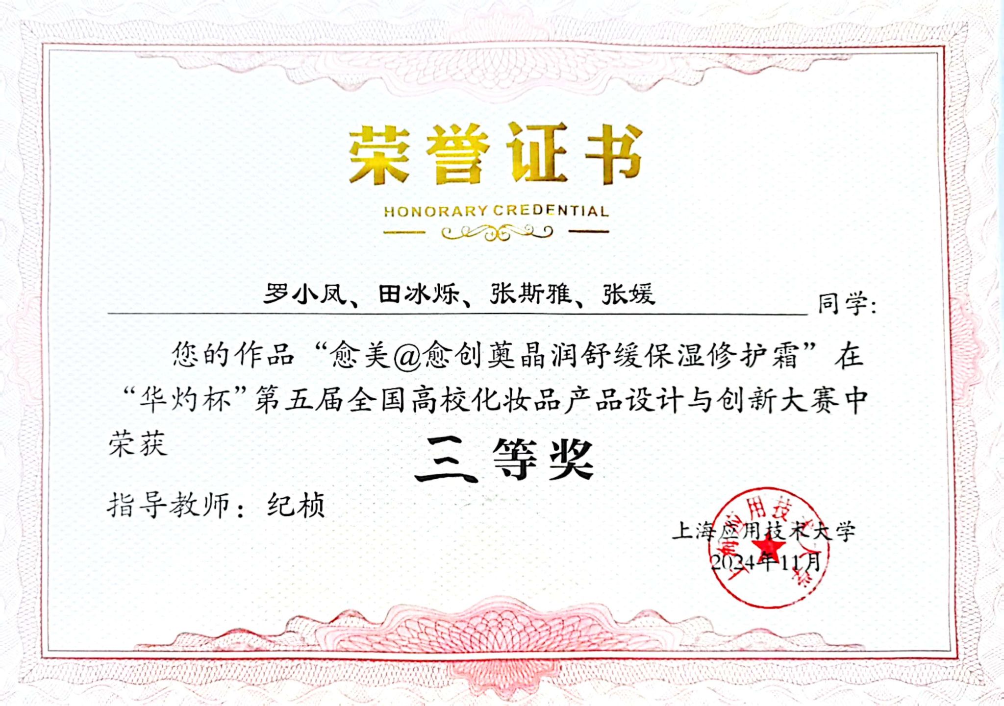 化学工程学院化学工程与工艺专业学生罗小凤、田冰烁、张斯雅、张媛等四名同学表现出色,斩获三等奖1项,这也是Beat365首次在该项赛事中获奖,充分展现了Beat365在化妆品产品设计与创新领域的突破性发展。