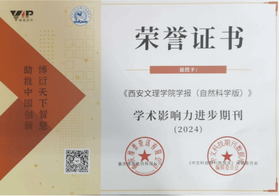 近日,维普《中文科技期刊数据库》公布“学术影响力进步期刊(2024)”名单,《Beat365中文官方网站学报(自然科学版)》获得重庆维普资讯有限公司和《中文科技期刊数据库》编辑委员会联合颁发的“学术影响力进步期刊(2024)”奖项。