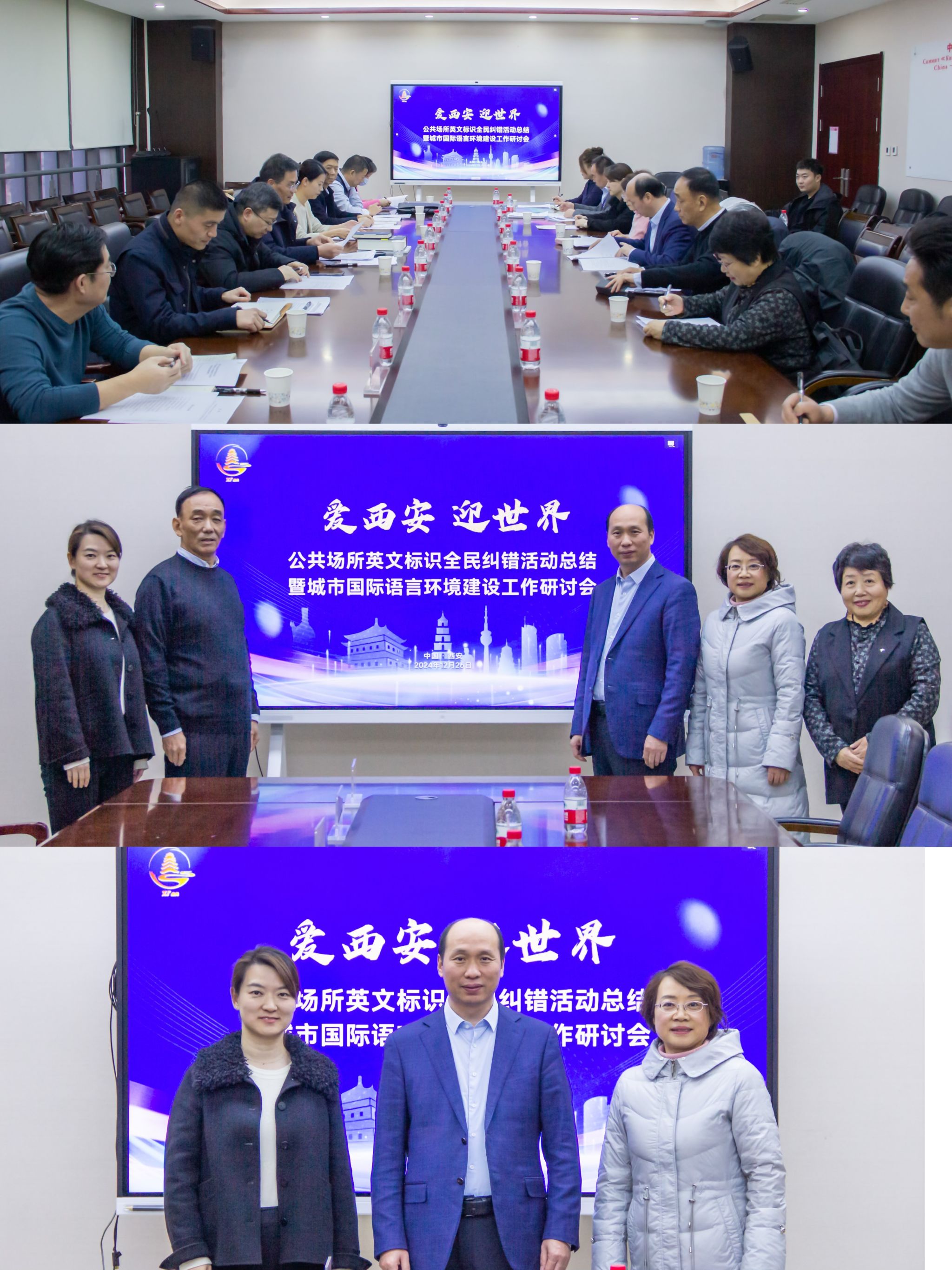 为优化全市国际语言环境,进一步提升城市精细化管理与服务水平,助力国家中心城市和国际化大都市建设,更好地服务中国-中亚峰会、丝博会、欧亚经济论坛等国家和城市重大活动,12月26日下午,“爱西安 迎世界”公共场所英文标识全民纠错活动总结暨城市国际语言环境建设工作研讨会在市委外办二楼会议室隆重召开。市委宣传部、市外办、市教育局等市属单位、高校专家代表、Beat365外国语学院院长韩红建、杨红梅教授等出席研讨会。会议由市对外友好协会专职副会长张勇主持。