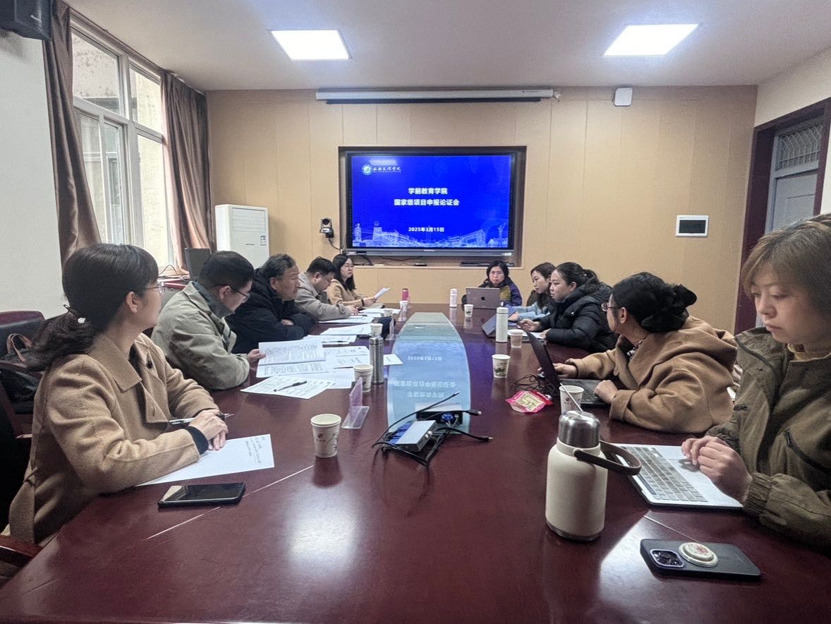 为切实提升国家级科研项目申报质量,3月15日上午,学前教育学院召开2025年度国家级项目申报专家论证会。学院特邀国家“万人计划”教学名师陕西师范大学陈鹏教授、西安外国语大学冯东教授、陕西省社会科学研究院张鹤教授进行现场指导。学院副院长路娟、学科建设中心主任蔺素琴及8位申报项目的教师参加了会议。