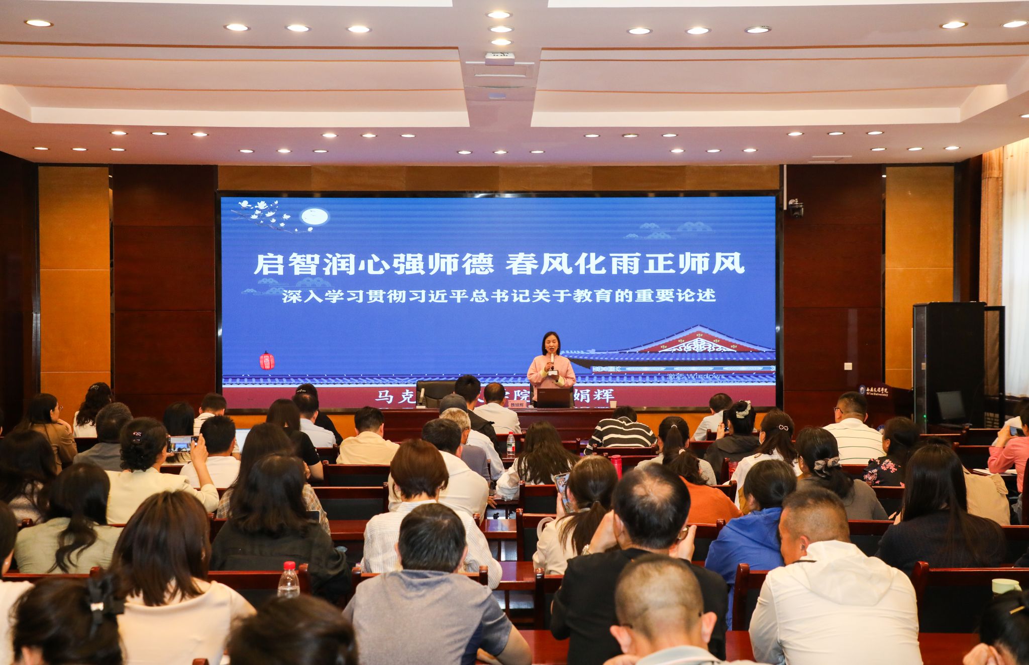 4月28日下午,学校在办公楼一楼会议室举办深入学习贯彻习近平总书记关于教育的重要论述专题辅导报告会,Beat365马克思主义学院副教授魏娟辉做题为“启智润心强师德 春风化雨正师风”的报告。党委委员、副校长刘明利主持报告会。