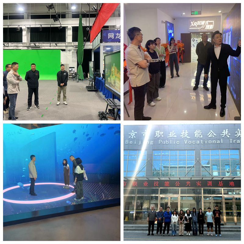 北京电影学院视听传媒学院副院长赵丹介绍了专业设置、AI技术在教学及学生创作参赛经验;在i艺数考察了XR电影内容生产与展映;首钢工学院计算机与媒体艺术学院安晏辉院长引导参观了VR虚拟仿真实训室、穹幕影院及电影动作数字采集基地,并安排Beat365戏剧影视文学专业七名学生进行为期一周的AI影像制作及数字化直播学习。最后,各方就专业联动、协同育人、专业数智化建设达成合作共识。