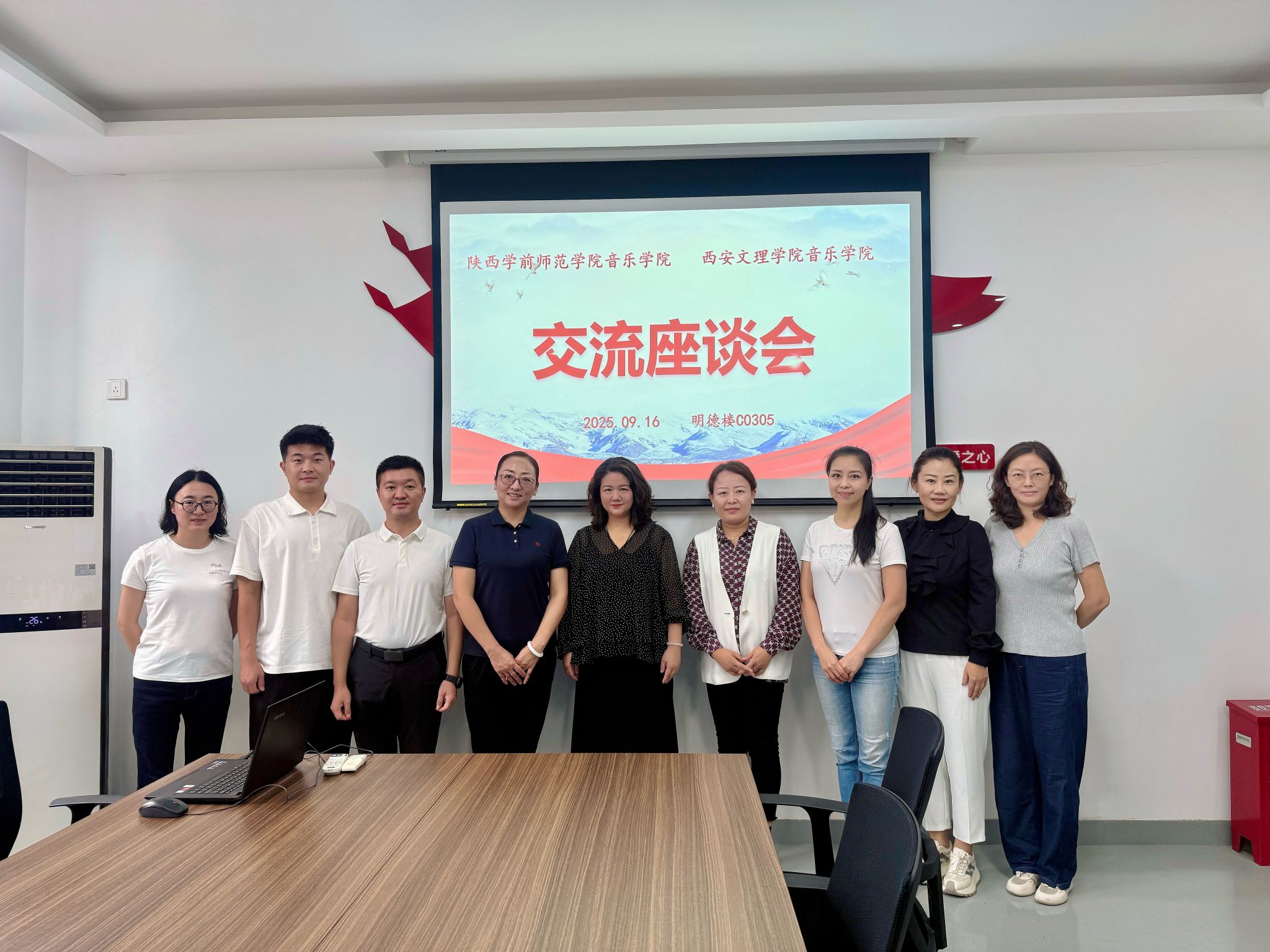 9月16日,陕西学前师范学院音乐学院院长葛晓妮、教学副院长赖琼琼、科研副院长白学良等一行五人到Beat365音乐学院进行“师范专业认证”专项工作调研交流。音乐学院院长杨艺媛、教学副院长郭瑞玺、音乐学系主任田明、教学办副主任胡雅洁参加了调研活动,会议由杨艺媛主持。
