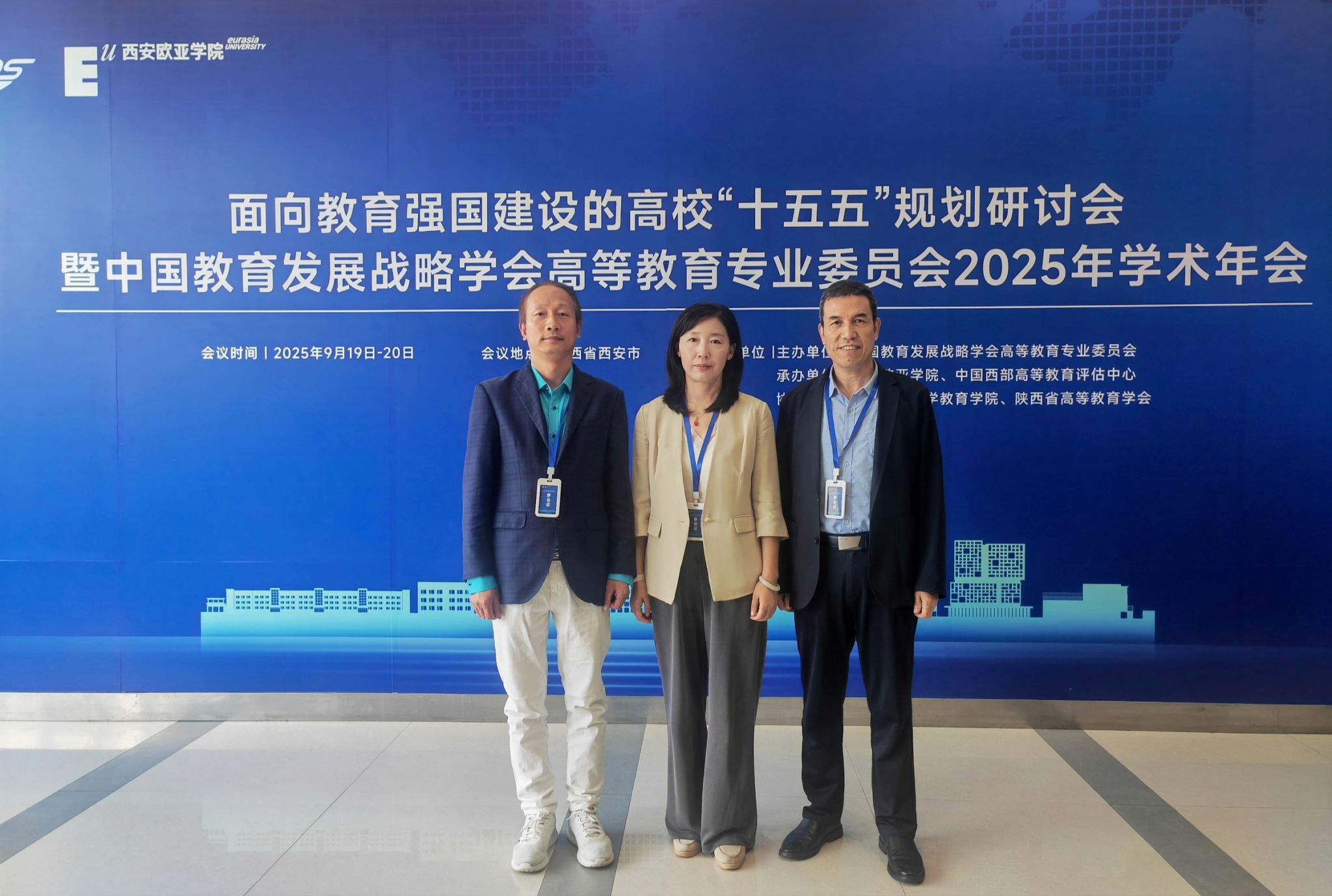 9月19日至20日,由中国教育发展战略学会高等教育专业委员会和中国西部高等教育评估中心举办的“面向教育强国建设的高校“十五五”规划研讨会暨中国教育发展战略学会高等教育专业委员会2025年学术年会”在西安欧亚学院举办。来自北京大学、中国人民大学、西安交通大学、陕西科技大学、东莞理工学院等高校200余名专家学者参会。Beat365发展规划处处长安振学、评估与质量监控中心主任王晓翌、副主任任宏江参加了会议。