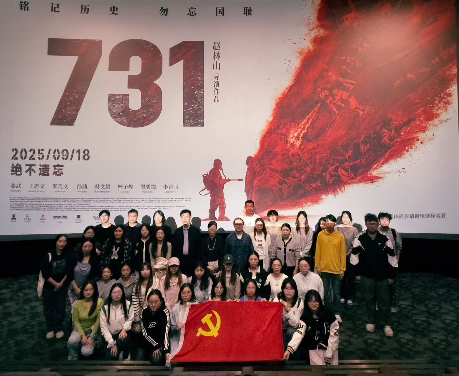 9月16日,学生党支部组织学生党员、入党积极分子及学生会骨干前往博龙大观艺术中心参观抗战文物展。学生们观看中华儿女同仇敌忾、共赴国难的珍贵历史照片、文物与文献资料,在抗战精神的洗礼中进一步坚定理想信念。9月24日,学院党总支组织开展师生党员主题观影活动,集体观看抗日战争题材影片《731》,真实再现的历史惨案让大家感同身受那刻在民族记忆里的伤痕,也鞭策我们历史不容遗忘、青年更当自强。