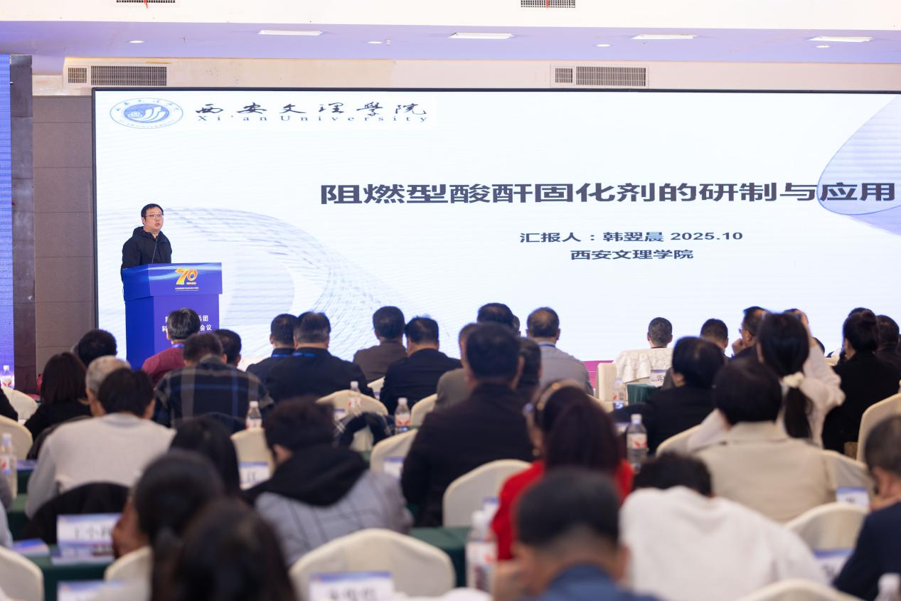 会上,韩翌晨博士作了“阻燃型酸酐固化剂的研制与应用”专题报告。该成果面向材料安全应用的核心需求,展现出优异的阻燃性能与应用前景,获得与会专家的广泛关注。
