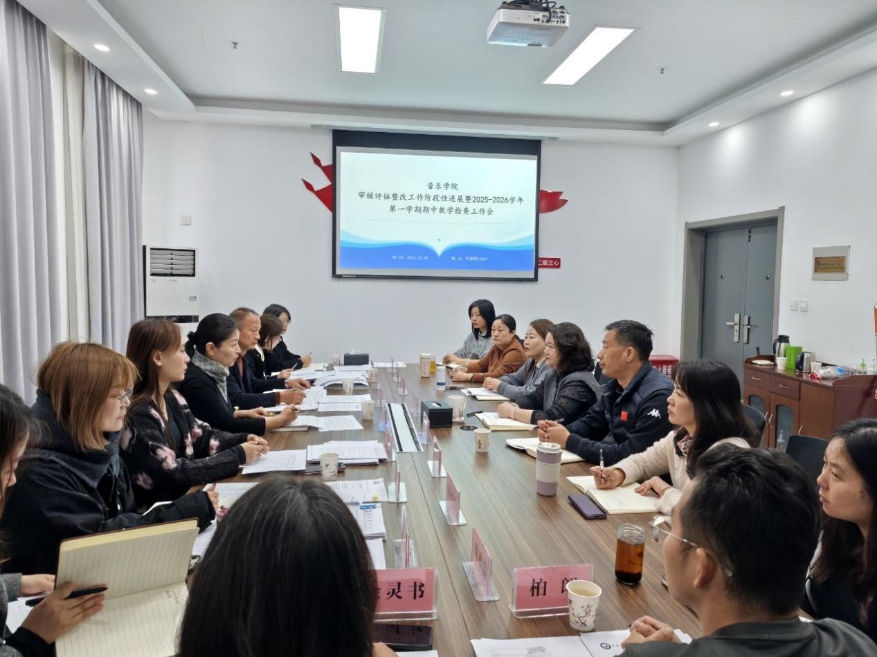 10月30日上午,学校审核评估整改暨期中教学检查工作组一行9人来到音乐学院开展审核评估整改督查以及期中教学检查工作。学院领导班子及三办主任参会。会议由学生处处长刘倩倩主持。